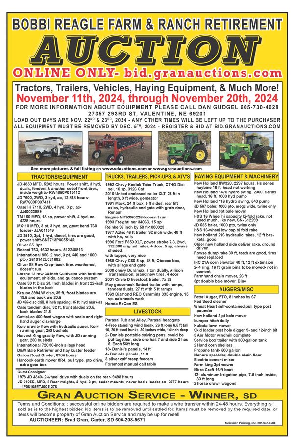 AUCTIONEER: Brad Gran, Carter, SD 605-208-5671