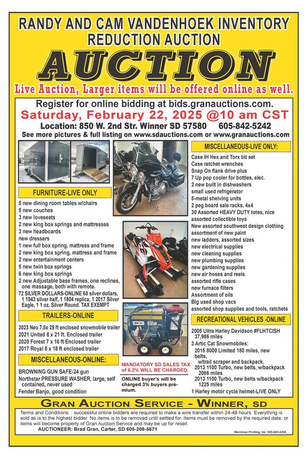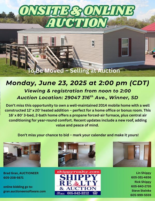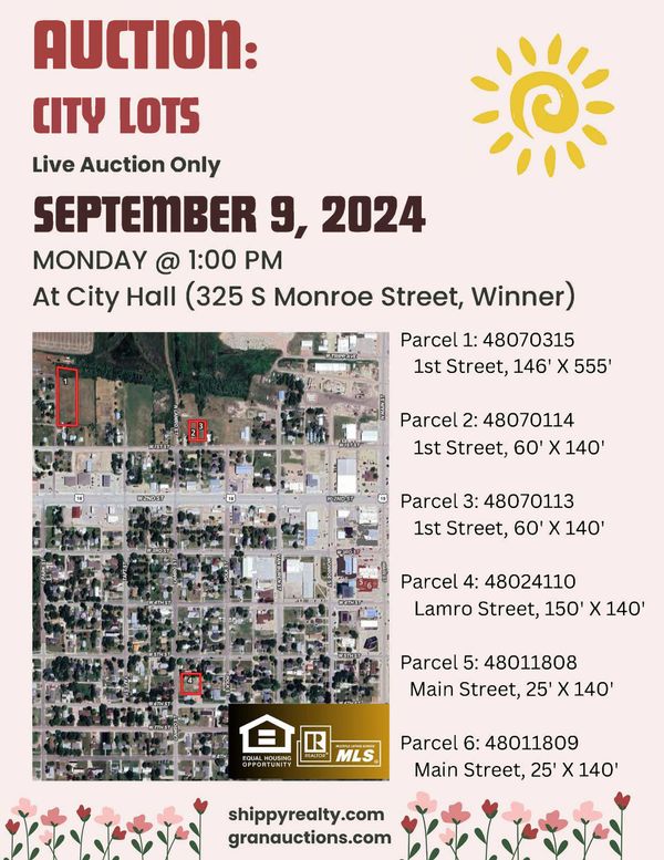 Auction Location: At City Hall (325 S Monroe Street, Winner, SD)