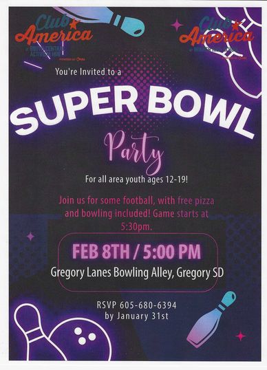 For all area youth ages 12-19. Free pizza and bowling with the game starting at 5:30 PM.