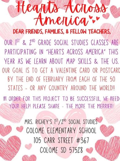 Mrs. Richey's students are participating in Hearts Across America. Please share the following information.