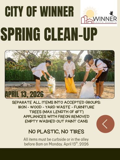 Residents of Winner, South Dakota, are encouraged to participate in the City of Winner Spring Clean-Up scheduled for Monday, April 13, 2026. This annual event helps the community tidy up yards, alleys, and neighborhoods after the long winter season.