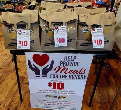 We recognize that times are challenging, and at County Fair, we are committed to supporting those in need by providing meals for the hungry. Purchase these bags of selected groceries for $10, and we will donate them to the food pantry. Alternatively, you can give them to the individual or place in need of your choice.